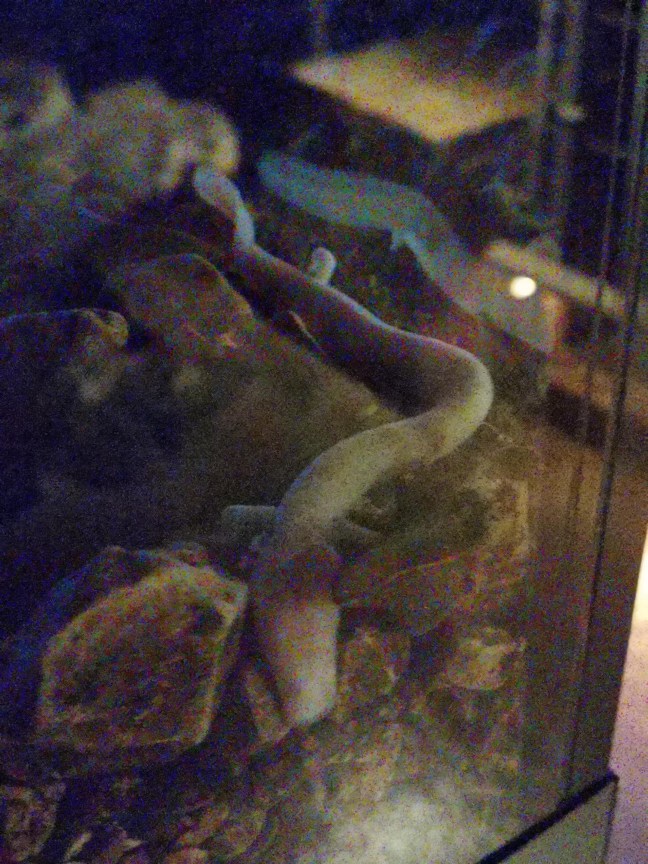 Nun waren wir in Slowenien im Wanderurlaub und hatten schon den Feuersalamander gesehen. Irgendwann sagte mein Mann zu mir, dass er den Grottenolm doch auch mal gerne sehen, die Fahrt aber 2 Stunden dauern würde. Ich wies ihn darauf hin, dass es keinen besseren Zeitpunkt als jetzt gäbe, näher kommen wir an den ursprünglichen Grottenolm nicht ran. Gesagt, getan – wir machten uns auf den Weg nach Postojna, um den Grottenolm zu sehen. Als wir dort ankamen, kauften wir zuerst Grottenolm-Merchandise-Artikel. Man muss sich ja einstimmen… Dann ging es los: Mit einer englisch-sprachigen Gruppe von rund 20 Personen fuhren wir mit einer kleinen Bahn in die Tropfstienhöhle. Die Höhle ist riesig und die Fahrt dauerte ca 20 Minuten. Danach wanderten wir noch ca 20 Minuten durch die Höhle, bis wir schließlich am Terrarium des Olms ankamen. Live in der Höhle kann man diesen nicht betrachten, aber es werden immer ein paar Exemplare in einem Terrarium gehalten für die Touristen. Es wird vor Ort aber sehr darauf geachtet, dass alle ruhig sind, keiner mit Blitz fotografiert oder gar an die Scheiben klopft.