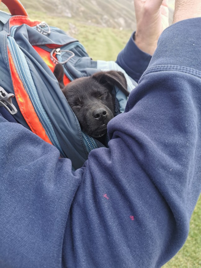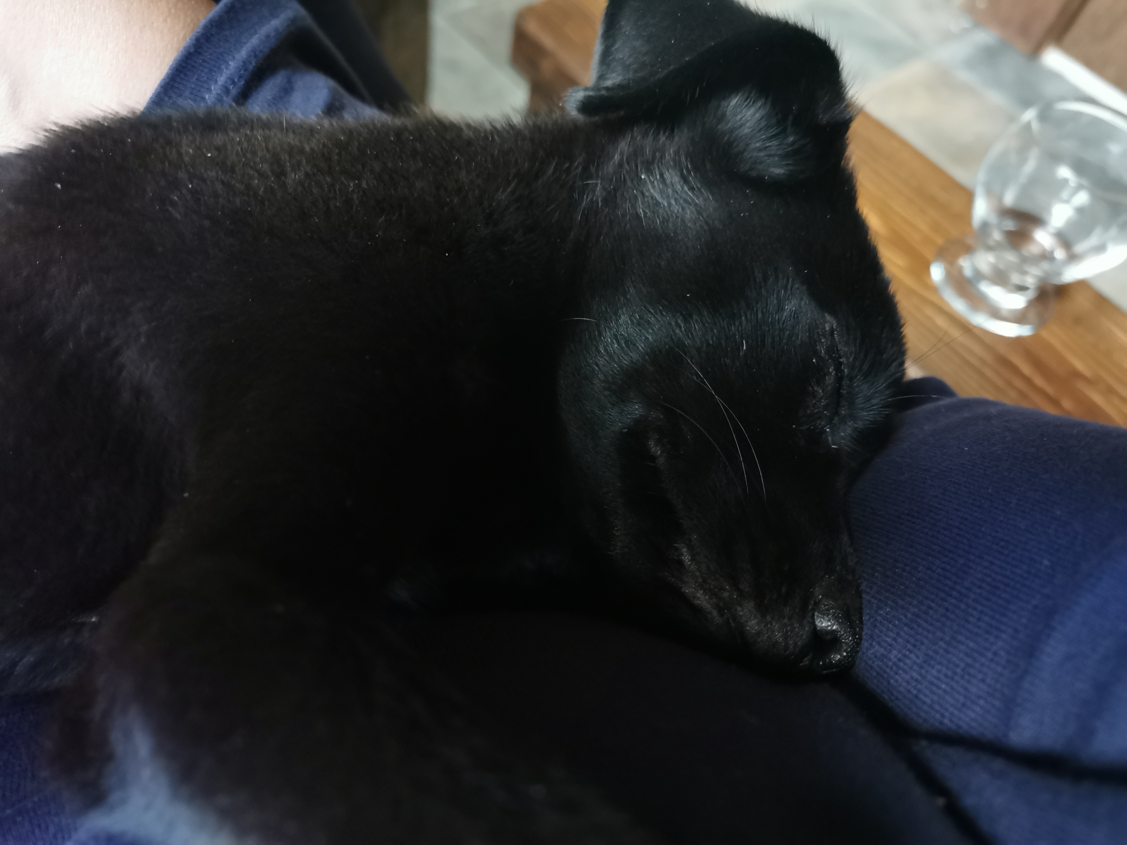 Wir gingen mit Muri im botanischen Garten spazieren, sie schlief im Körbchen, aber gelegentlich erwischten wir sie auch so: