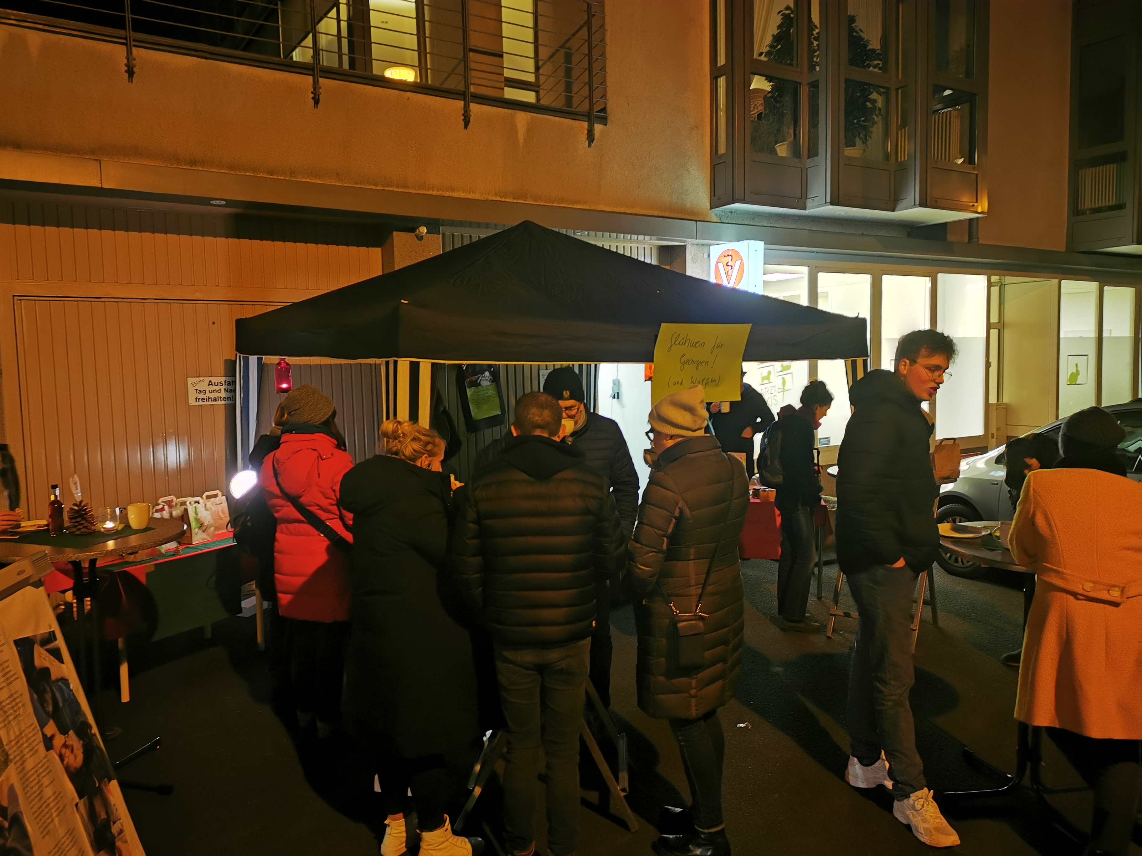 Vor Weihnachten macht unsere Praxis jedes Jahr eine Spendenaktion in der Praxis. Das haben wir aufgrund Corona kurzerhand vor die Tür verlegt und zwar genau gesagt- vor die Garage. Wir haben Waffeln gebacken und Glühwein ausgeschenkt. Wer wollte, konnte etwas spenden. Und es sind tolle 865€ zusammen gekommen. Die Aktion hieß „Glühwein für Georgien“ (ja, es lebe die Alliteration).