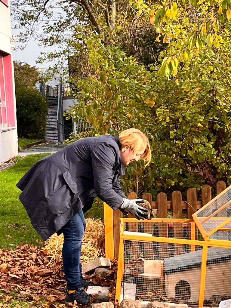 Die Kinder konnten anschließend in der Klasse mit einer Webcam das Treiben von Benni im Haus beobachten. Zukünftig gibt es für jeden Tag einen Igeldienst, auch die Wochenenden sind von Eltern abgedeckt. Die Kinder bekommen den Link für die beiden Webcams und können Benni mit ihren Familien von zuhause aus beobachten.